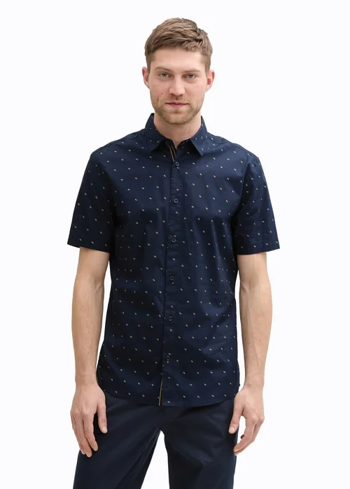 Tom Tailor® Short Sleeve Shirt - Navy Small Bars Design