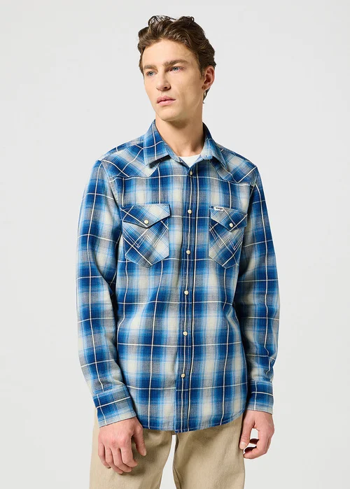 Wrangler® Western Shirt - Buffalo Indigo Check